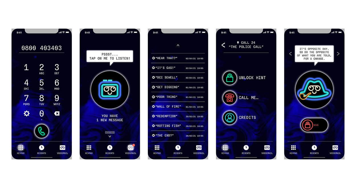 Unknown number is 'a first person talker', a new genre of videogames that you play by using your voice, created by Meaning Machine