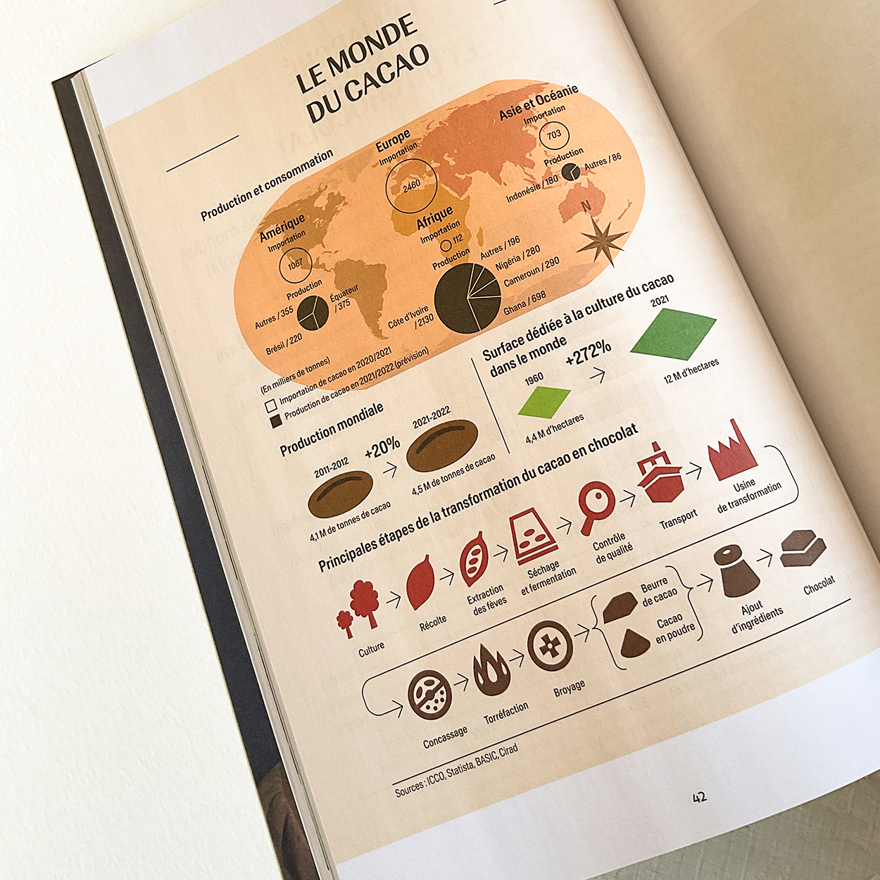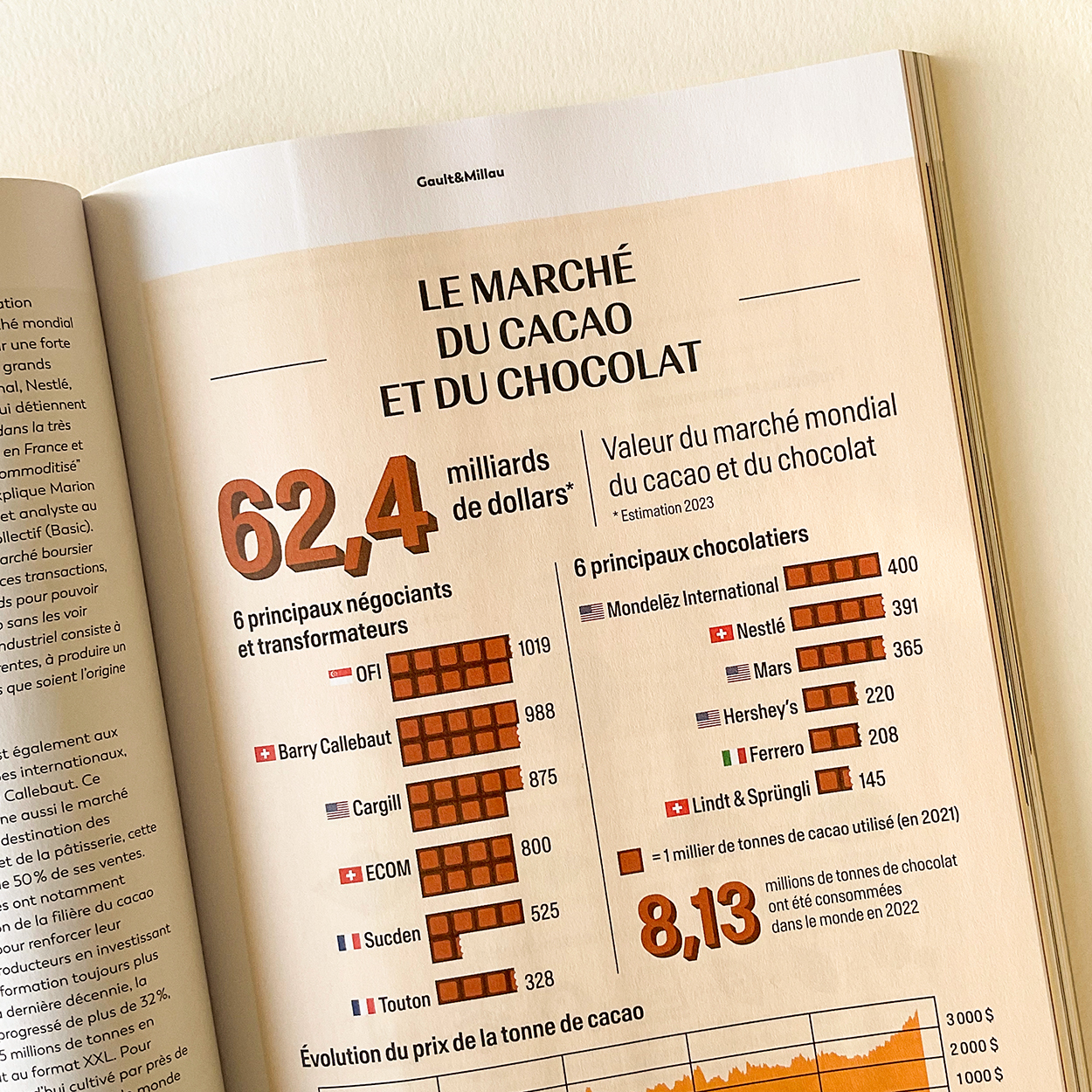 A series of infographics designed for the redesigned edition of the Gault&Millau magazine, dedicated to "seeing the world through gastronomy", according to their own words. The infographics offered a comprehensive overview of the global cocoa and chocolate market, covering everything from production and processing to sales.