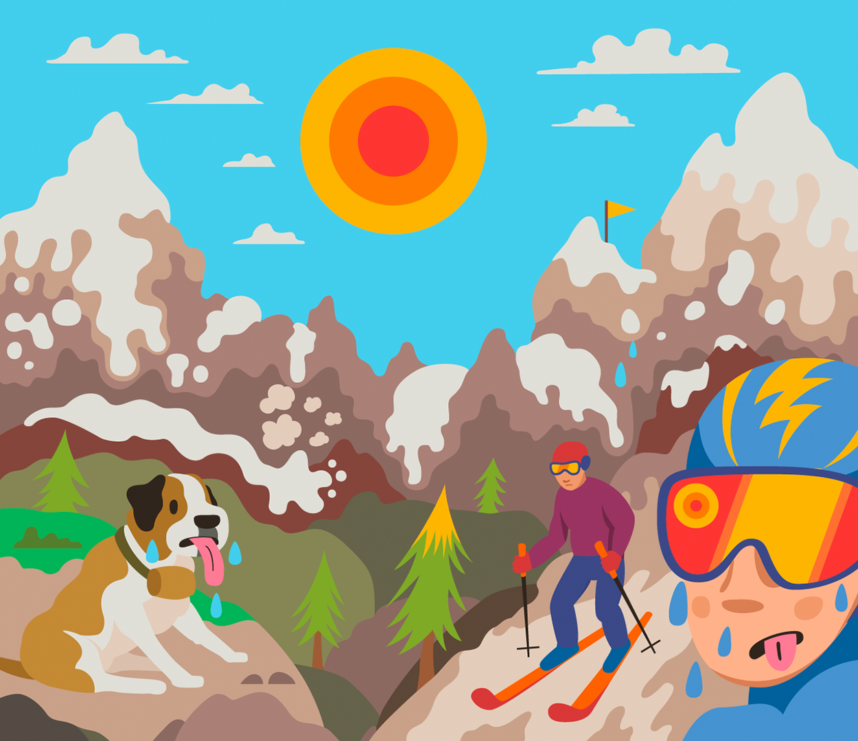 A series of illustrations about the effects of ski stations on climate change and viceversa. The original article also spoke about good practices that ski resorts can put into effect so skiing can become more sustainable.